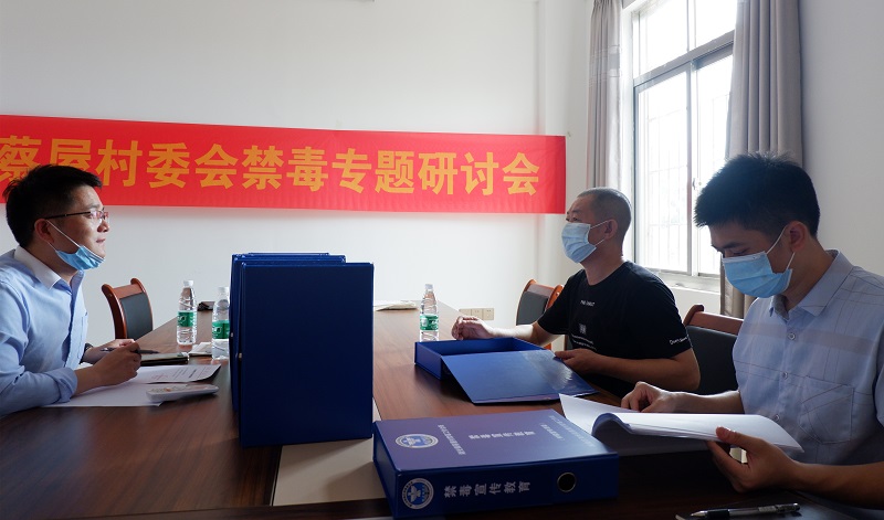 冉荣华一行听取铺仔社区、蔡屋村委会负责人上半年禁毒工作情况及下半年禁毒工作计划汇报。冉荣华部长肯定铺仔社区、蔡屋村委会上半年禁毒工作,他表示禁毒工作要宣传到位,关心关爱到位,专项资金规范到位,并对下一步如何做好迎检工作提出指导意见。