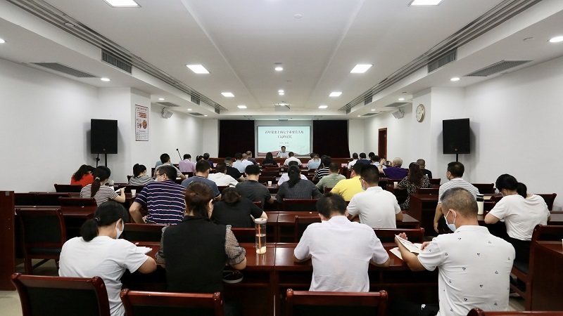 湛江市总工会网讯(图\王婷 文\孙平 编辑\黄嘉明)6月24日,湛江市总工会在一号会议室开展党史学习专题党课活动,市总工会党组书记、常务副主席陈端以《百年党史上的七个重要关头及工运的记忆》为题授课。市总工会机关全体干部职工、直属事业单位班子成员等40多人聆听党课。