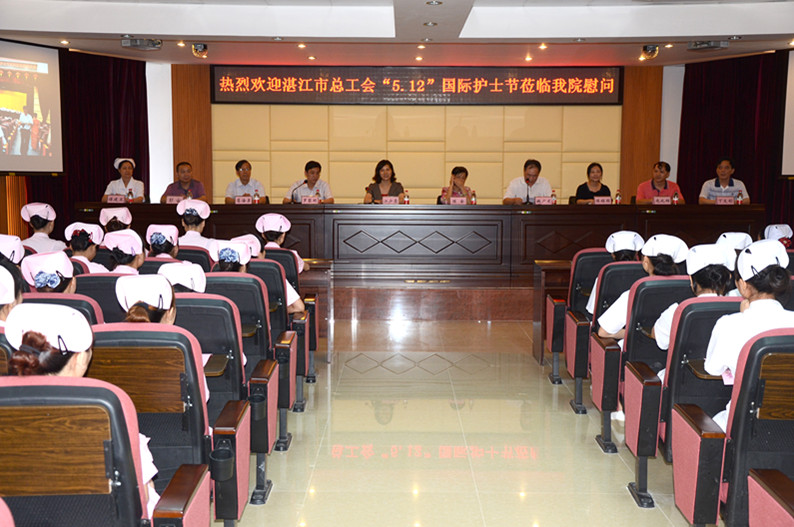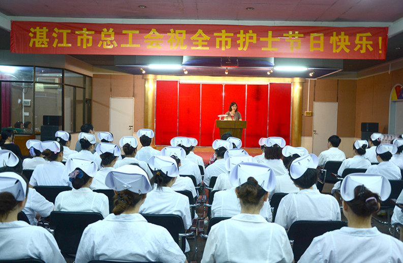 湛江市总工会网讯(图/文/编辑 梁尚柱)5月10日下午,在“5.12”国际护士节即将来临之际,受市人大副主任、市总工会主席梁涛的委托,市总工会党组书记、常务副主席江少霞,市总工会党组副书记、调研员陈全率领市总工会、市总工会女职工委员会、市教育(卫生)工会相关领导深入广东省农垦中心医院、湛江市第四人民医院、湛江市第三人民医院等医院,慰问了辛勤工作在医护第一线的护士们,向她们致以节日的祝福。