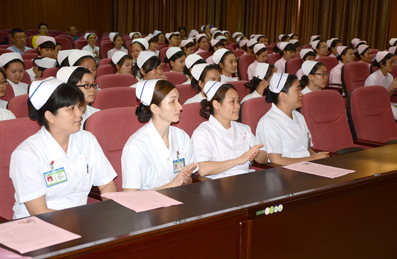 在慰问中,慰问团成员与护士们面对面进行了交谈。江少霞同志代表慰问团向护士们致以亲切的问候,她表示全市广大护士是人民群众健康的守护者,把真诚的爱心无私奉献给每一位患者,护士们“燃烧自己,照亮别人”的精神伟大。她勉励护士们要不断学习、提高自己的技术水平,为患者提供优质护理服务,为我市医疗卫生事业做出积极的贡献。同时,她希望医院及卫生系统各级工会要高度重视护理工作,多关心护士,给护士提供良好的成长、学习、工作和生活环境。