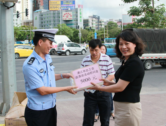 江少霞书记为赤坎交警支队送上送清凉活动慰问金