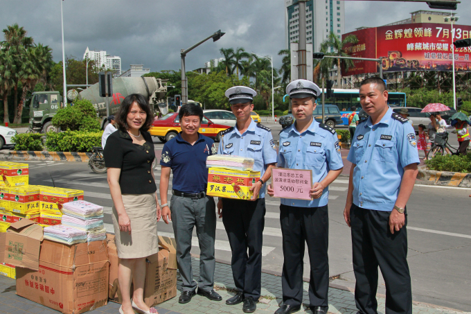 江少霞书记、陈江泓副主席为霞山交警支队送上送清凉活动慰问金和凉茶