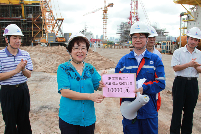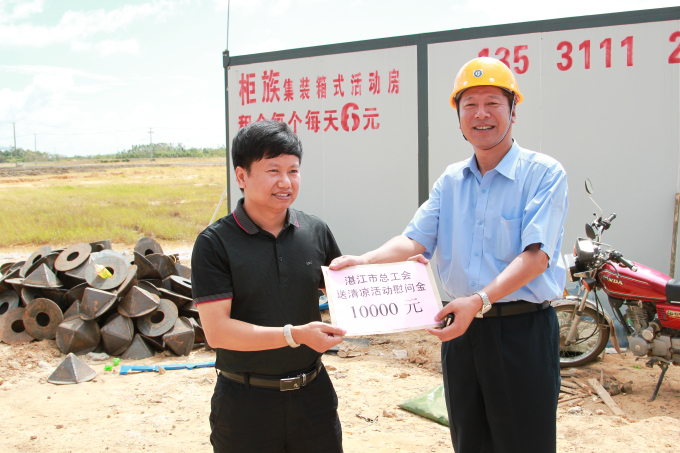 陈江泓副主席为湛江钢铁建设工地工人送上慰问金