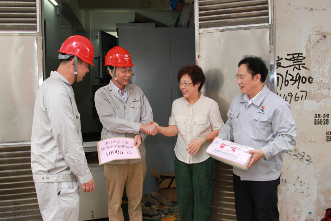 陈全副书记分别为南油合众公司及湛江供电局外线作业区工人送上慰问金和慰问品