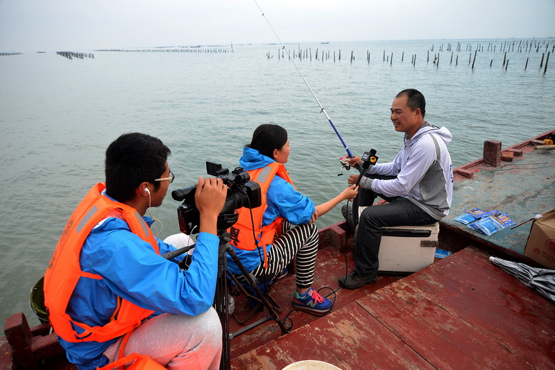 湖南卫视钓鱼频道的记者在现场采访