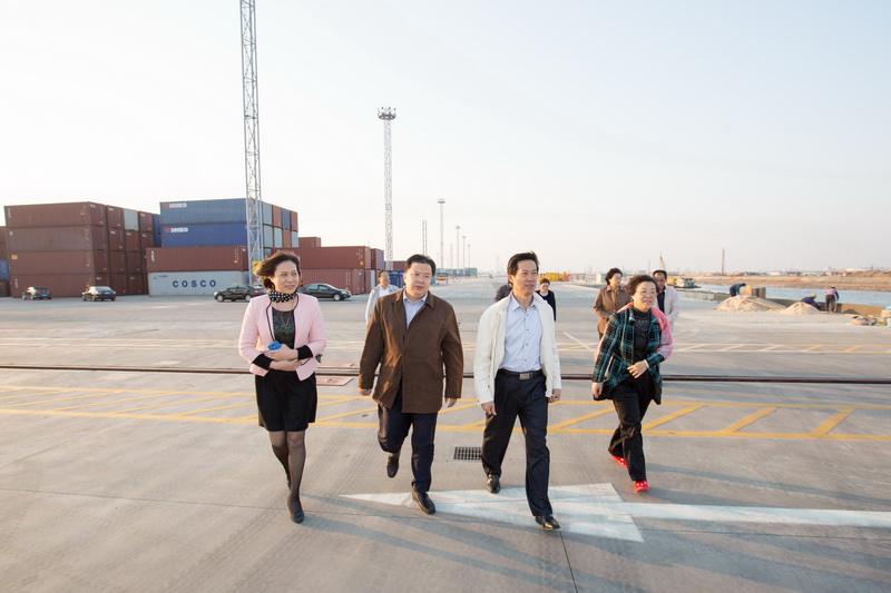 5日下午,调研组一行到湛江港(集团)股份有限公司调研,图为杨敏主任一行冒着大风,到湛江港宝满集装箱码头察看