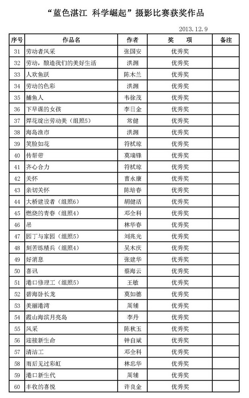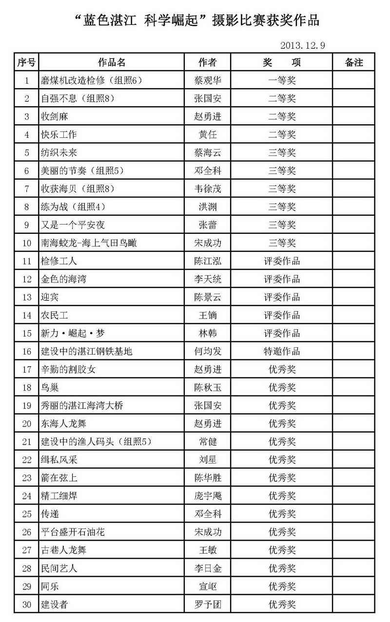 附:“蓝色湛江、科学崛起”职工摄影比赛获奖名单