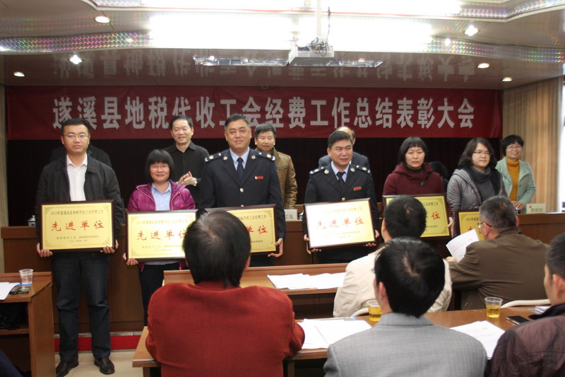 大会由遂溪县人大副主任、总工会主席李国德主持,遂溪县总工会党组书记、常务副主席陈秋怡对2013年地税代收工作作总结汇报,县地税局局长许小丰对地税系统代收工作做出部署。大会共为遂溪县地方税务局遂城税务分局等6个先进单位、莫小飞等19名先进个人颁发了奖牌和证书。