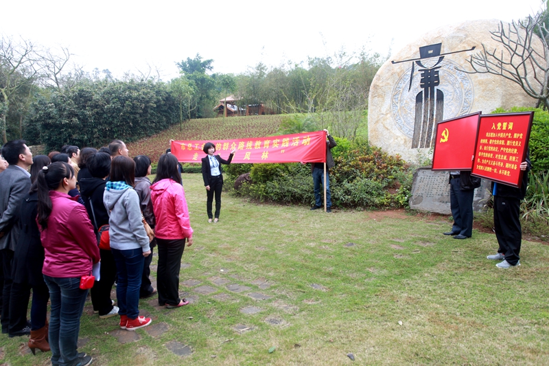 湛江市总工会网讯(图/陈炼 文/苏明涛)3月8日上午,值“三八”国际劳动妇女节之际, 根据市总工会开展党的群众路线教育实践活动工作安排,市总工会一支部组织机关全体党员干部到市党风廉政教育基地湖光岩“清风林”开展主题教育活动。