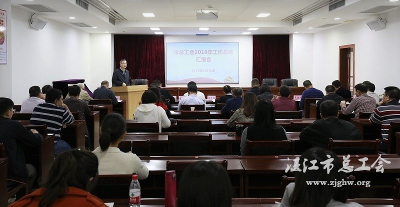 湛江市总工会网讯(图/王婷 文/刘扬厉 编辑/王婷)1月16日上午,湛江市总工会召开2019年工作总结汇报会。市人大常委会副主任、市总工会主席朱华雄出席并讲话,市总工会党组书记、常务副主席陈端主持会议。市总工会全体领导班子成员,各部室负责人、各直属事业单位班子以及机关全体人员共70余人参加会议。