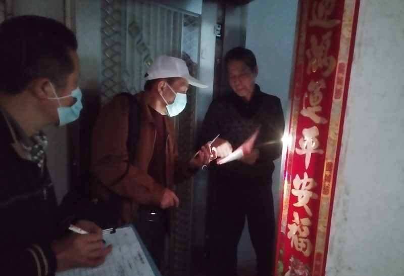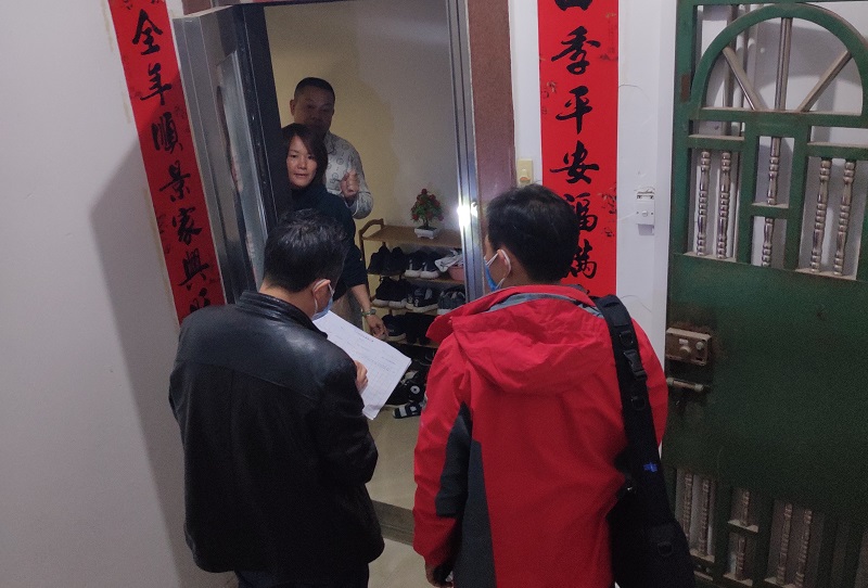 全覆盖排查不是口号,是行动!考虑到有些住户白天外出,晚上回家,在家时间与工作队员入户排查的时间错开,队员们及时分析形势,转换思路,调整下户的时间,决定在17日当天晚上继续上门对白天排查不在的住户继续进行摸排,同时通过走访邻居等多种方式开展排查,确保做到不漏一家一户。排查过程中,发现海滨东门路有一出租户从湖南长沙坐飞机广州再转高铁回湛,目前已通知她居家观测14天,并做好跟踪。