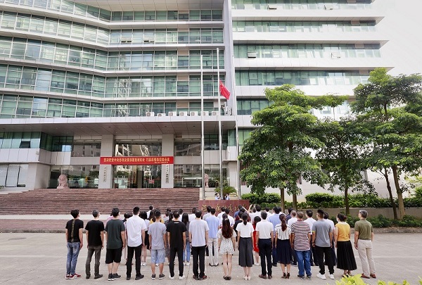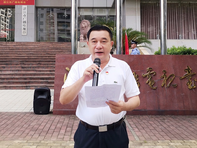 湛江市总工会网讯(图文\孙平 编辑\黄嫩叶)7月1日,市总工会在本单位一楼举行庆祝中国共产党成立99周年“七一”升国旗仪式。市总工会党组书记、常务副主席、机关党委书记陈端带领市总工会党员干部和工作人员50多人参加仪式。
