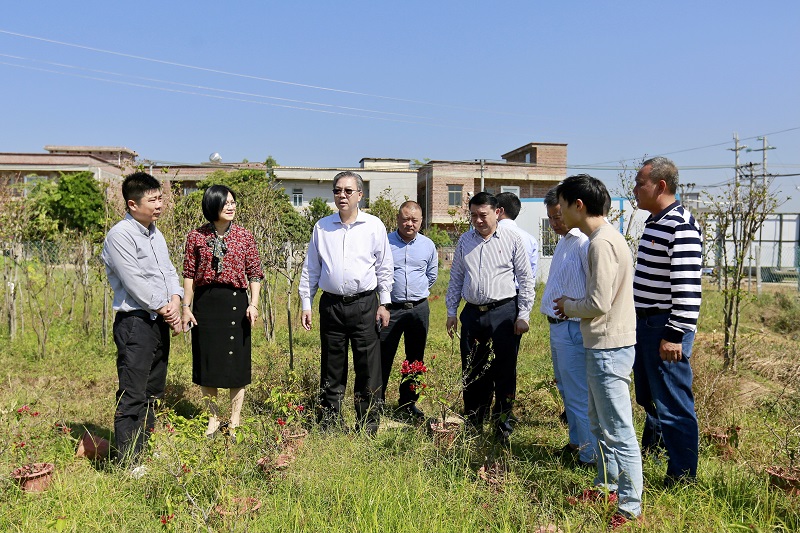 随后,朱华雄一行实地走访了廉江市雅塘山角村种养专业合作社苗圃蔬果基地,详细询问了种植基地的规模、运营方式和建设进展等情况。