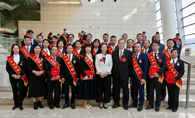 湛江市委常委、宣传部部长陈云、湛江市人大常委会副主任、市总工会主席朱华雄与我市国家、省劳动模范和先进工作者合影(二)
