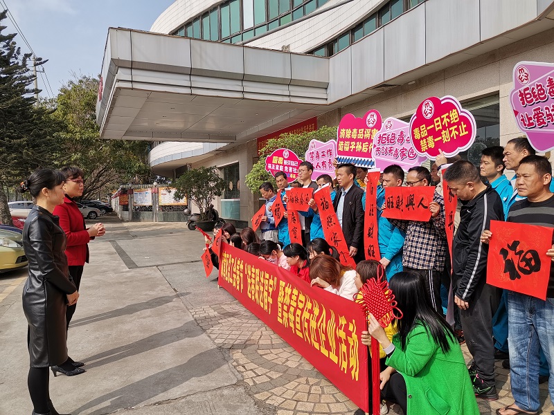 为湛江事达实业有限公司职工代表送春联和宣传禁毒知识现场