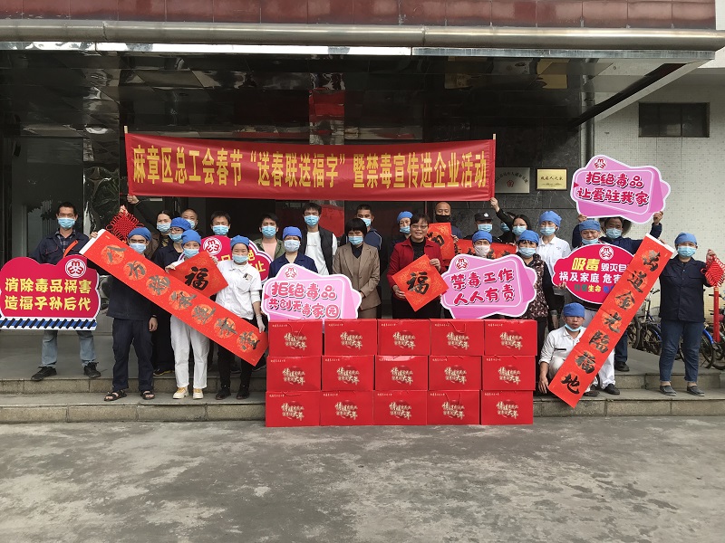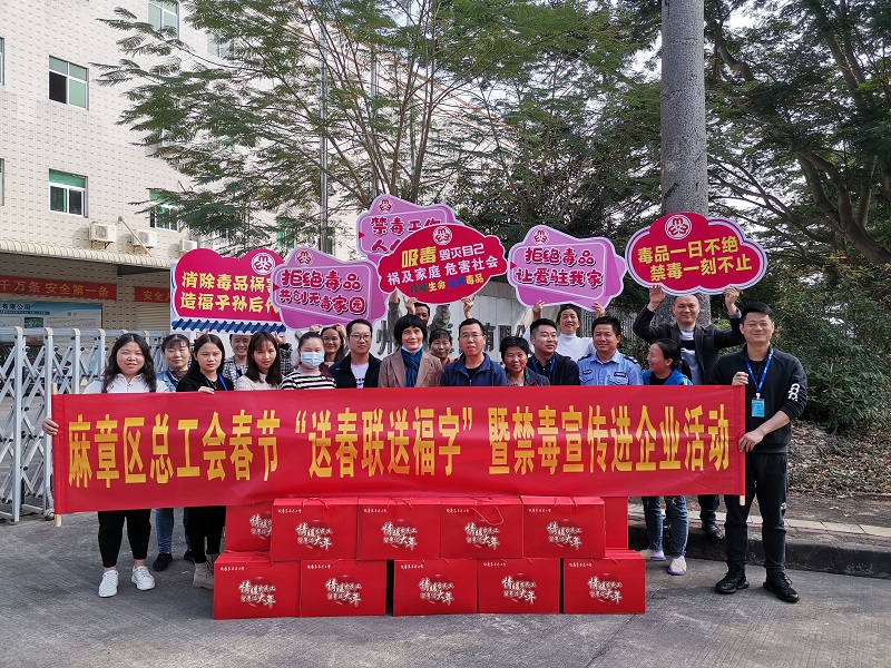 2021年麻章区总工会开展春节“送春联送福字”暨禁毒宣传进企业活动