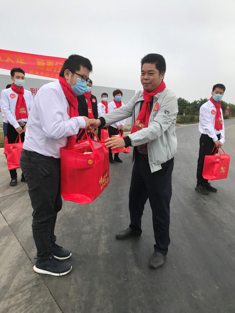 洋青镇委书记陈武为留粤农民工代表送上慰问包