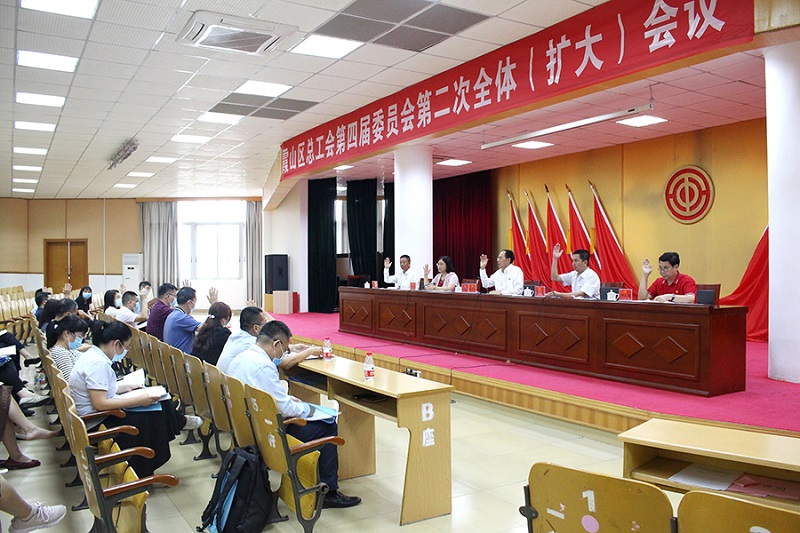 湛江市总工会网讯(图文\胡嘉丽 编辑\黄嫩叶)4月29日下午,霞山区总工会在区政府机关1号楼3楼会议室召开第四届委员会第二次全体(扩大)会议。中共霞山区委常委、区委办主任李剑君,霞山区人大常委会副主任、区总工会主席袁建兴出席会议并在会上讲话。霞山区总工会第四届委员会委员、霞山区总工会第四届经审委员、各级工会主席参加会议。