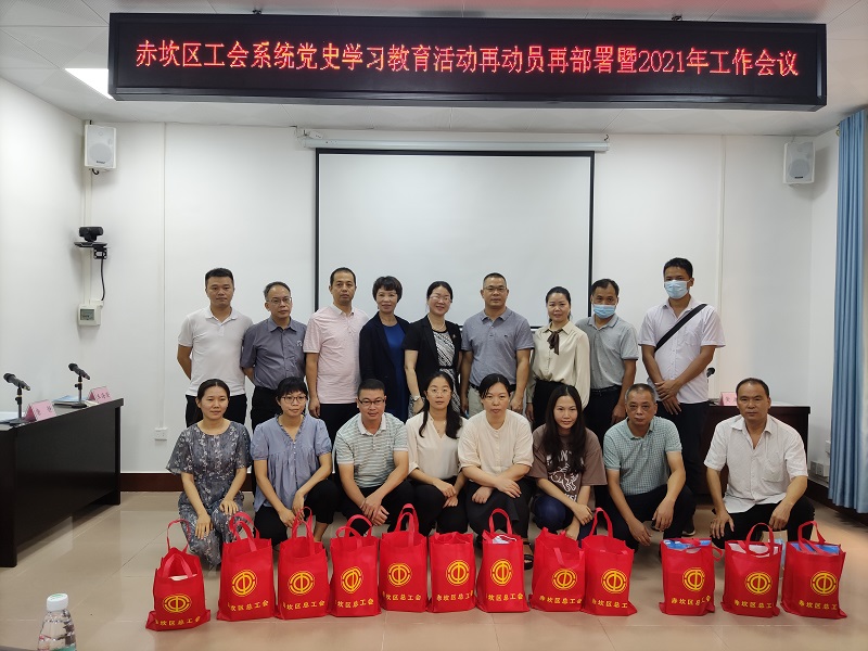 替补会议结束后,赤坎区总工会组织第三届全体委员、大系统工会主席进行党史学习教育再动员再部署。会上传达学习了区委党史学习教育有关会议精神和市总工会第十四届委员会第十三次全会精神,并进一步部署了区总工会2021年度工作任务,最后向各街道工会和大系统工会赠送党史学习教育书籍一套,助力基层工会更好地开展党史学习教育。