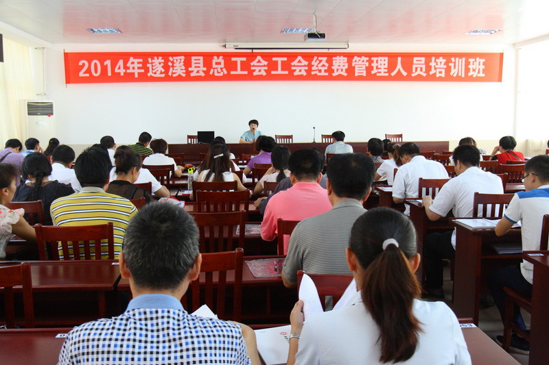 湛江市总工会网讯(图文/彭伟 符嘉懿 编辑/陈培春)为进一步规范基层工会经费的收支管理,提高工会财务、经审人员业务水平, 7月24日上午,遂溪县总工会举办了2014年工会经费管理人员培训班,由湛江市总工会财务部部长吴廉泉、副部长吴艳两位同志授课,来自全县各企、事业单位工会主席、财务、经审等工会经费管理人员共98人参加了培训。