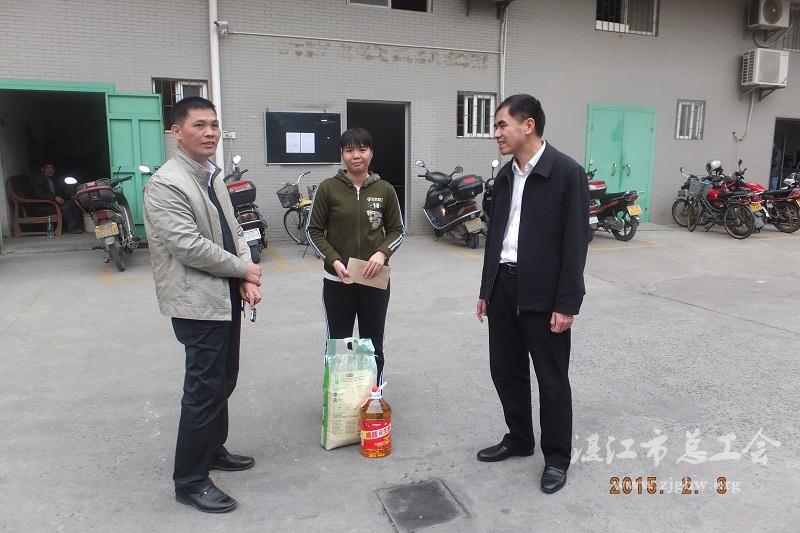 陈辉一行先后慰问了冠利纸业公司困难职工吴晓清、恒兴特种饲料有限公司困难职工黎德利和麻章中学困难职工王晓鹏,和他们亲切交谈,感谢他们对麻章经济发展做出贡献,并送上慰问金和慰问品。