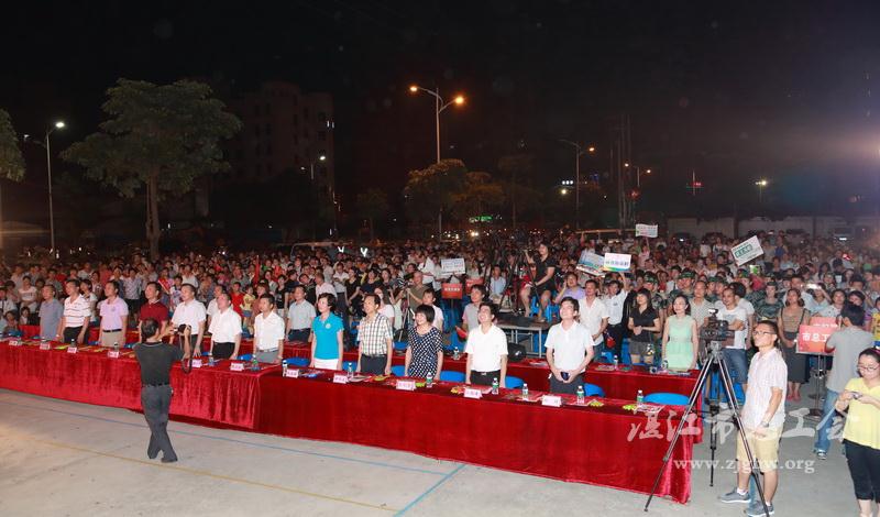 湛江市总工会网讯(图文/陈培春)6月29日晚,在建党94周年和省运会即将在湛江举办之际,廉江市人社局、廉江市总工会等单位联合举办 “劳动美·庆七一·迎省运”农民工联欢晚会,藉此祝福农民工兄弟和广大的劳动群众安居乐业,平安幸福。廉江市委副书记、市长吴群忠,廉江市委常委、常务副市长李世东,湛江市总工会党组成员、副主席陈江泓等领导和3000多名职工、农民工、市民一起观看了演出。