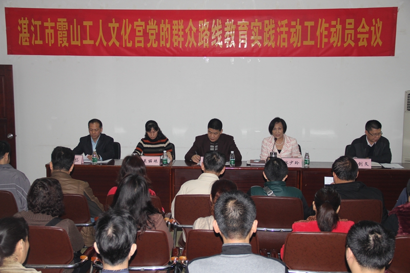 湛江市总工会网讯(图文/陈炼 庞晓峰 编辑/陈培春)3月12日,霞山工人文化宫党支部在市总工会督导组的指导下,召开了党的群众路线教育实践活动工作动员会,全体党员、职工参加了会议。霞山工人文化宫主任、党支部书记林少玲作了动员讲话,市总工会督导组组长邵平静,对这次活动提出了要求:一要准确把握中央、省委、市委和市总开展教育实践活动的基本要求。二要认真组织实施教育实践活动。