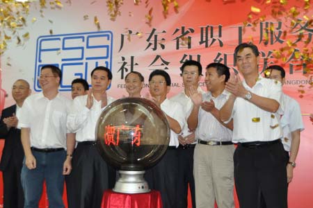 5月16日上午,广东省职工服务类社会组织联合会成立大会在广州召开,省人大常委会副主任、省总工会主席邓维龙出席会议并讲话,省社工委专职副主任王光圣致辞,省总工会常务副主席陈宗文主持。大会审议通过了《广东省职工服务类社会组织联合会章程》,选举产生联合会第一届常务理事,正、副理事长,秘书长等。省总工会副主席、省法学会劳动关系研究会会长林锡明当选第一届理事长。邓维龙、陈宗文、王光圣等为联合会揭幕。