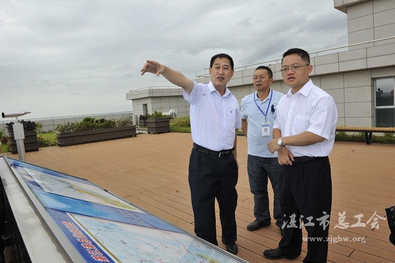 随后,冯建华来到湛江港大夏12楼的观光平台,观看了霞山港区。在观光平台,王立功向他介绍了集团公司建设发展情况。