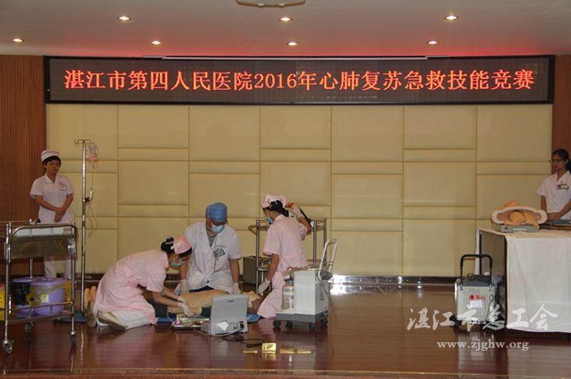 湛江市总工会网讯(图文/庞冰 编辑/孙平)5月5日,湛江市第四人民医院工会、团委、医护科和护理部联合组织全院各临床科室举办心肺复苏急救技能竞赛。