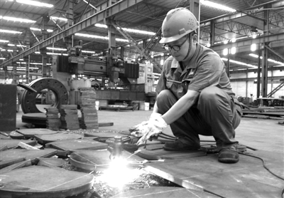 在铁塔车间,记者遇见了这位劳模,他的身材看起来有点矮小,身穿一套浅灰色的工作服,头戴一顶红色的安全帽,一副黑框眼镜让他显得有点内敛。