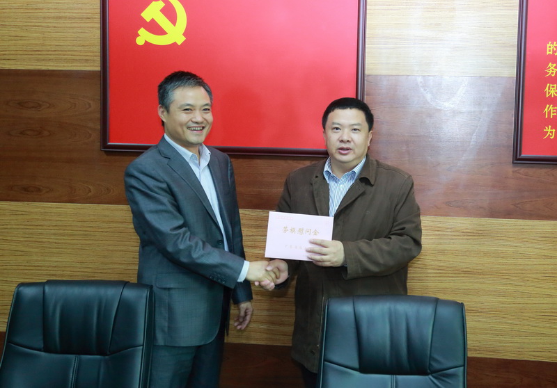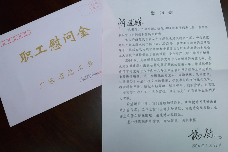 杨敏为劳模送上慰问金