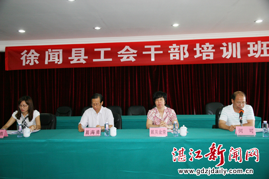 县委常委、宣传部长戴吴金荣,县人大副主任、总工会主席何可在讲话中要求广大工会干部,要统一思想,增强做好工会工作的责任感,不断熟悉工会工作业务,提高综合素质和履职水平;要把职工维权工作落到实处,积极为职工排扰解难,真正把工会组织建设成为名副其实的职工之家;要着力加强工会基层组织建设,创造性地开展好工会工作,真正发挥工会作为党和政府联系职工群众的桥梁纽带作用。同时希望大家充分利用这个难得的机会,认真听讲,善于思考,把老师的讲课消化好、吸收好。在今后的工作中,要学以致用,干出一流业绩,全面提升工会工作水平,为建设生态、富裕、文化、和谐新徐闻作出积极的贡献。