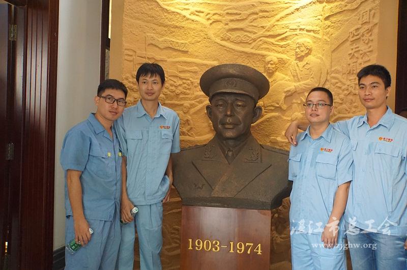 珠江啤酒公司外来工参观陈明仁将军故居后,在名将塑像处留影