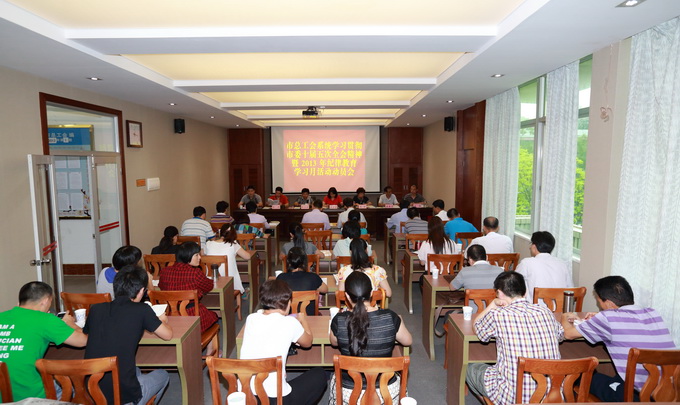 湛江市总工会网讯(图文/陈培春 李康著)8月15日下午,市总工会召开学习贯彻市委十届五次全会精神暨2013年纪律教育学习月活动动员会,市总工会党组书记、常务副主席江少霞出席会议并作讲话。会议由市总工会党组副书记、调研员陈全主持,市总工会全体干部职工和直属事业单位领导班子成员60多人参加。