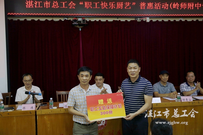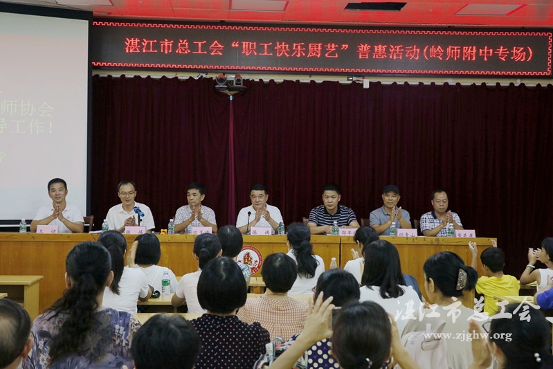 湛江市总工会网讯(图文/梁尚柱 编辑/孙平)8月20日至21日,湛江市总工会开展2019年度“职工快乐厨艺”普惠活动,市总工会党组书记、常务副主席陈端,岭南师范学院附属中学校长陈圣德等领导参加活动。活动先后在岭南师范学院附属中学和广东医科大学附属医院开展,两家单位职工及家属300多人积极参与,分享快乐厨艺带来的喜悦。