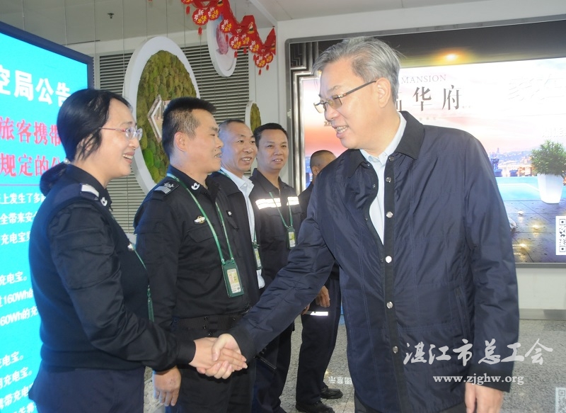 朱华雄一行来到湛江机场看望坚守岗位的一线职工,表示机场职工长期奋战在服务市民出行的最前沿,越到节假日越繁忙,安全服务保障的压力也越大,肯定他们坚守岗位的敬业精神,感谢他们为出行旅客保驾护航,全力保障好春运工作。随后,市总工会领导为坚守岗位一线职工送上新春慰问金。职工们纷纷表示,要将组织的温暖关怀,转化为做好安全保障工作的精神动力,为旅客出行提供更高效、更周到的服务保障。