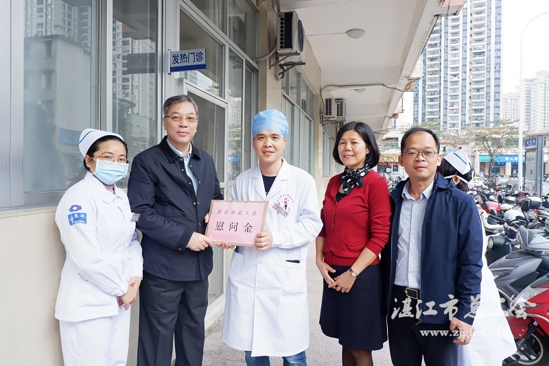 朱华雄一行来到湛江市第一中医医院看望坚守岗位的医务人员,询问了各病区的患者收治和病区运行情况,特别是发热门诊收治情况,对医务人员的辛勤付出表示敬意,并叮嘱大家保重身体。随后,市总工会领导为坚守岗位的医务人员送上新春慰问金。