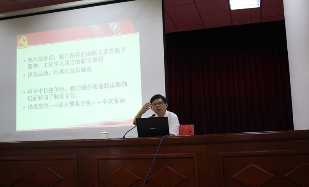 湛江市委党校党建教研室主任、副教授、党史学习教育市委宣讲团成员肖任在授课