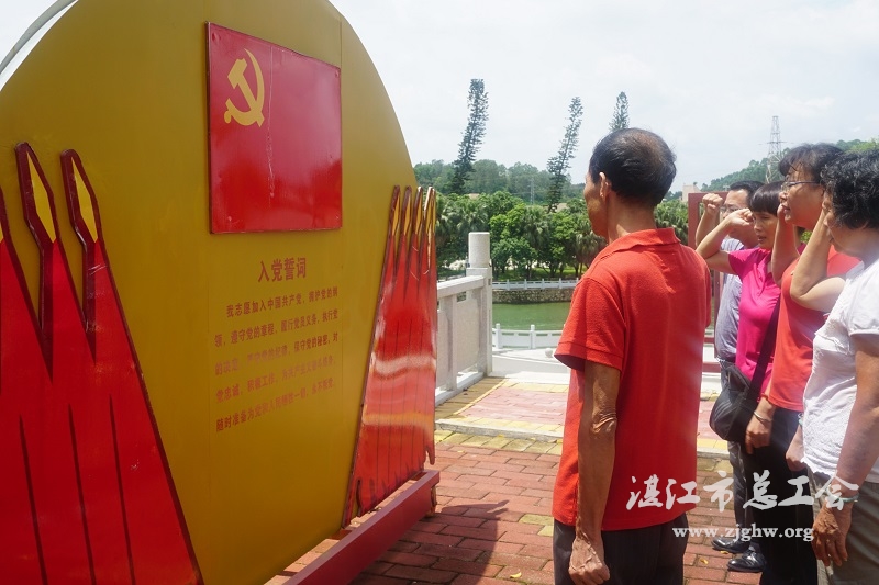 湛江市总工会网讯(图文/蔡秋生 编辑/孙平)6月28日,麻章区总工会全体党员干部到廉江鹤地水库教育基地开展迎“七一”主题党日活动。