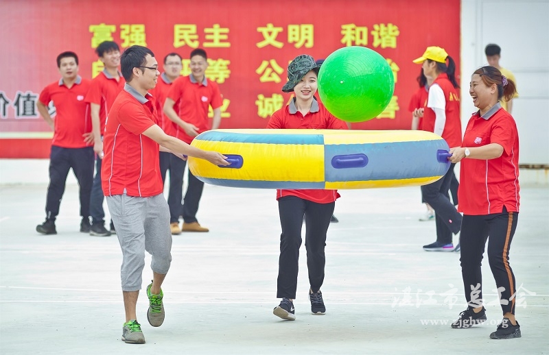 本次运动会集趣味性、娱乐性、协作性和竞争性于一体, 共有两个团队比赛项目,第一个团队比赛项目有众星捧月、同舟共济、飞龙乘月、彩虹奔月四个小项目,第二个团队比赛项目是拔河比赛。各项目采用计时、积分的方式确定比赛成绩,最后累计团体总分,按分数高低排列名次。比赛现场气氛融洽热烈,掌声、笑声、助威声此起彼伏,场上场下互动交流,相互切磋,到处都洋溢着勇于挑战、奋力拼搏、团结协作的团队精神,大家尽情享受了趣味运动带来的活力与欢乐。最后,湛江农垦实验中学工会荣获第一团队项目一等奖,麻章中学工会荣获拔河比赛一等奖。