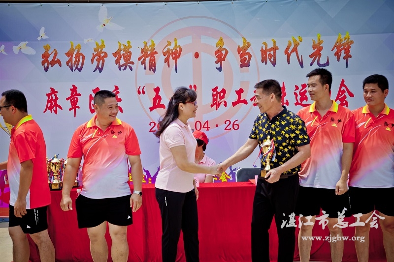 麻章区总工会主席邵小红为获奖队伍颁奖