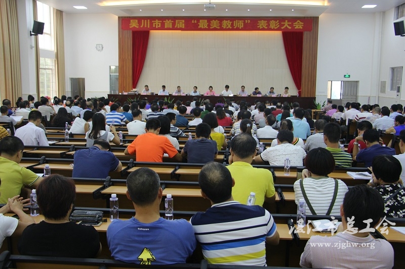 湛江市总工会网讯(图文/周志刚 编辑/孙平)教师节期间,吴川市召开首届“最美教师”表彰大会,副市长陈冰湖、市教育局局长陈志雄、市教育工会主席欧周全等领导出席会议并为20位“最美教师”代表颁奖。来自全市各镇街中小学校长、教职工代表等500多人参加会议。