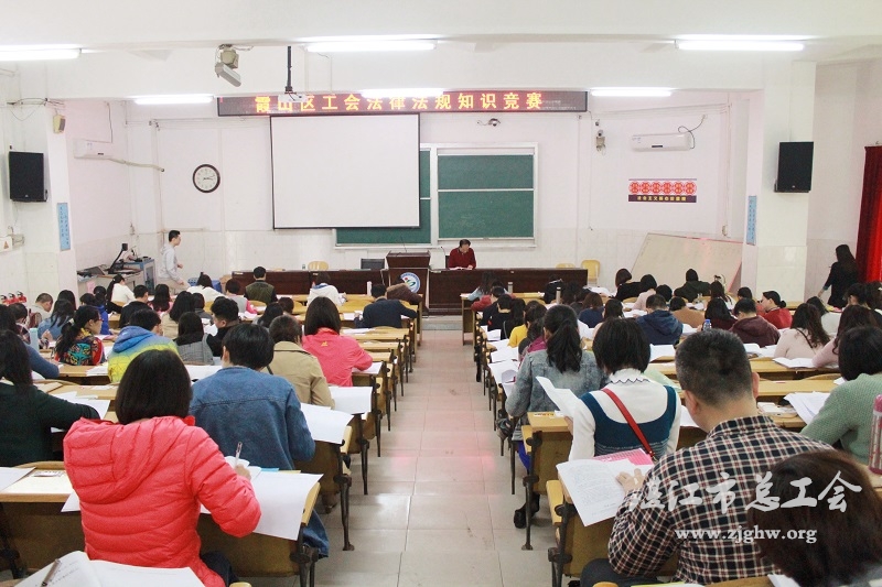 湛江市总工会网讯(图文/陈奕余 编辑/孙平)1月19日,霞山区总工会在霞山区实验中学电教室举办工会法律法规知识竞赛,共有150名企事业职工参加。