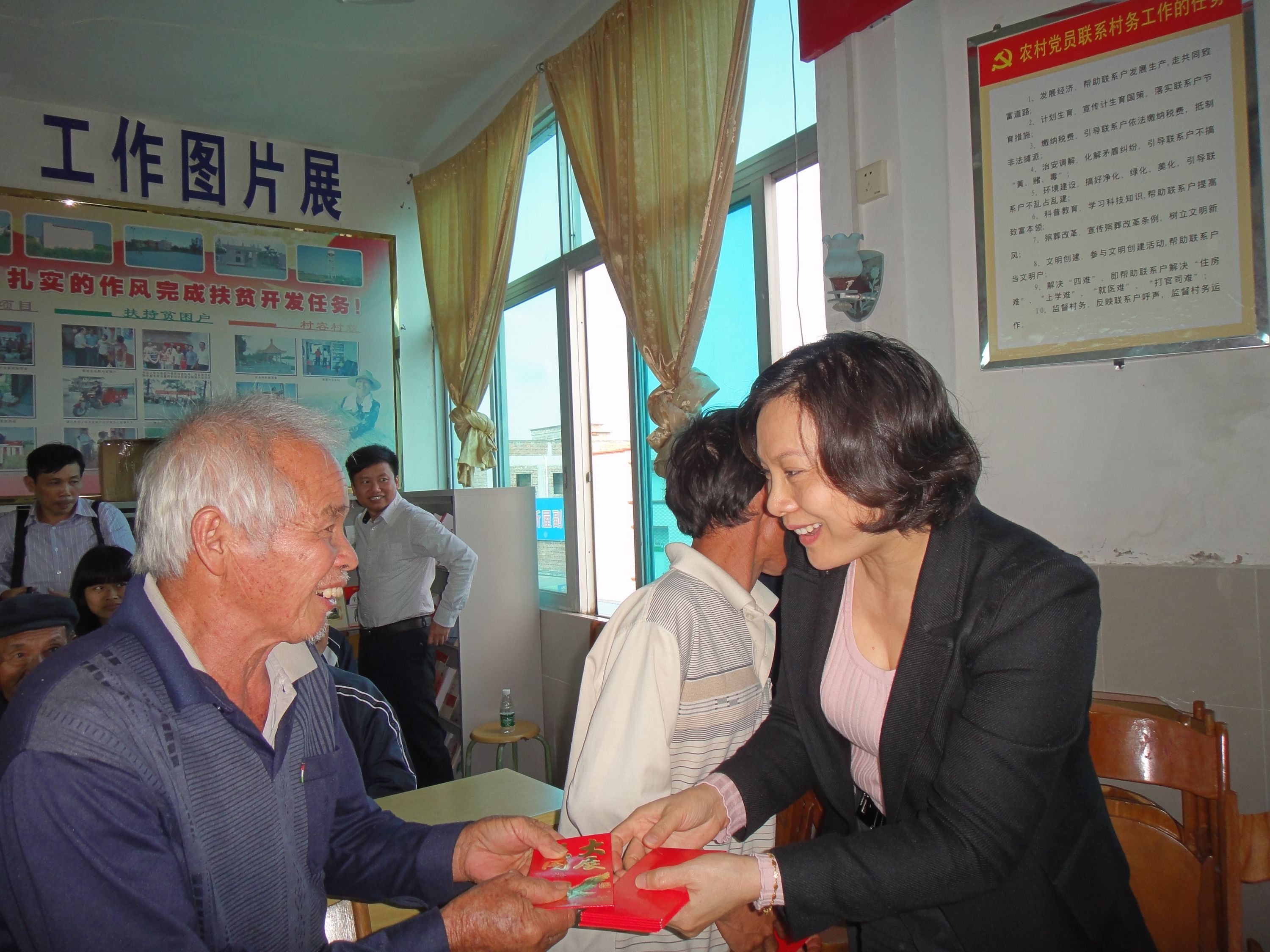 湛江市总工会党组书记、常务副主席江少霞为贫困户发放困难生活补贴