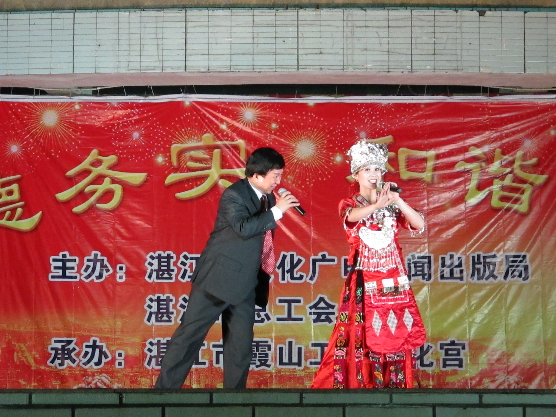 金龙笑归隐,银蛇喜相迎。2013年2月10日蛇年初一,由湛江市总工会、湛江市文化广电新闻出版局主办,霞山工人文化宫承办的“2013湛江市霞山工人文化宫迎春文艺晚会”在湛江市海滨公园开心广场举行。当晚有近五千观众欣赏演出共度欢乐年。