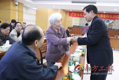1月16日,广东省总工会机关离退休老同志2013年迎春团拜会在省总会议大厅举行,省总领导陈宗文、郭泽宇、廖汝捷和130多名离退休老同志一同参加了团拜会。