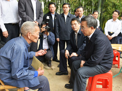 胡春华首先来到东源县仙塘镇龙尾村,详细听取村基层组织建设情况介绍。龙尾村地处山区,生产生活条件较为艰苦,贫困人口较多。胡春华书记对该村的干部群众十分挂念,春节前夕特地来这里看望。