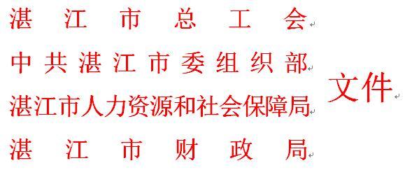 各县(市、区)总工会、党委组织部、人力资源和社会保障局、财政局,市直各有关单位,中央、省驻湛单位: